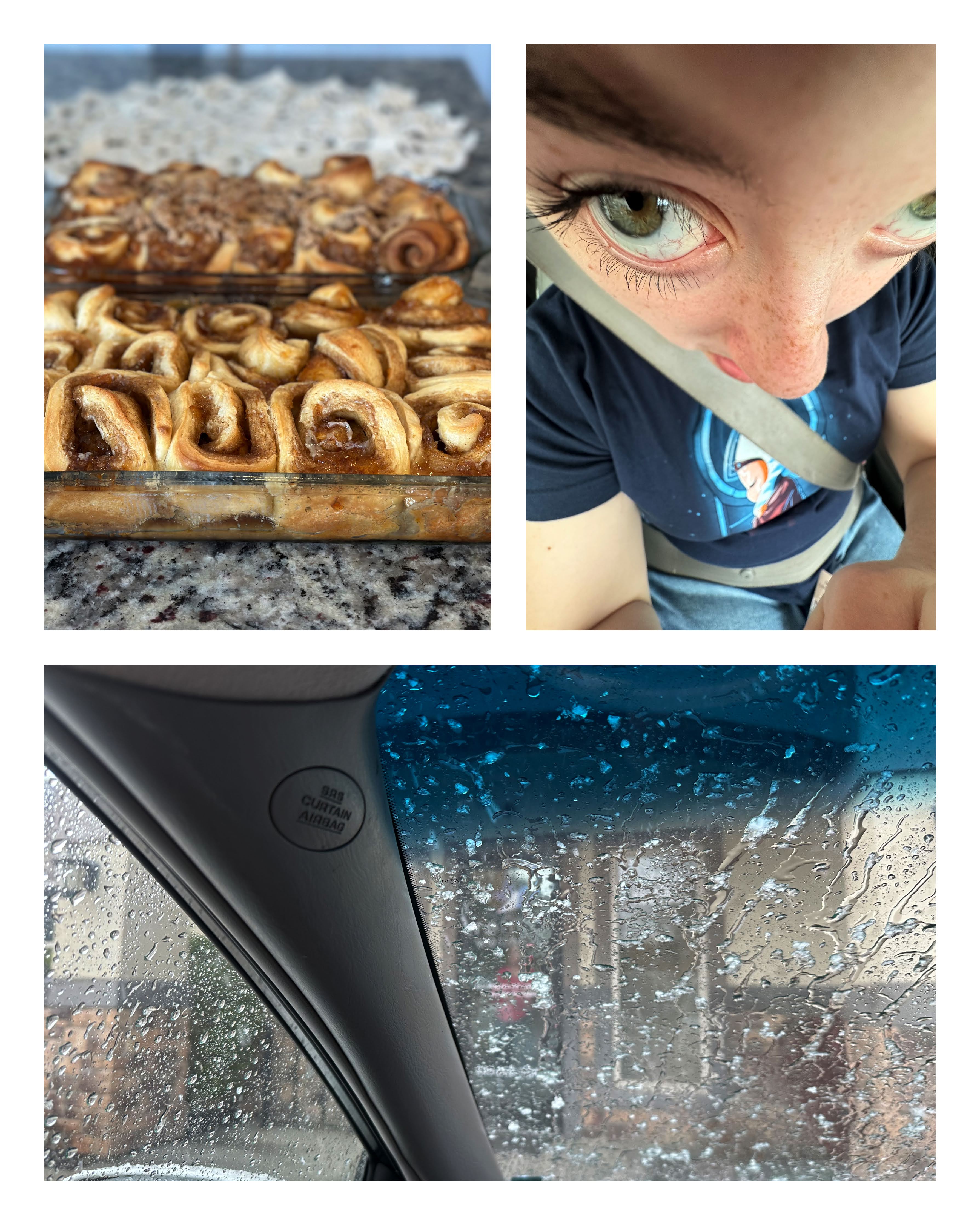 We had crazy weather this week. Started off with 80 degrees on Monday! Ended with snow and rain the rest of the week. Wednesday I was at Nina's in the van when hail pummeled the van. Crazy.